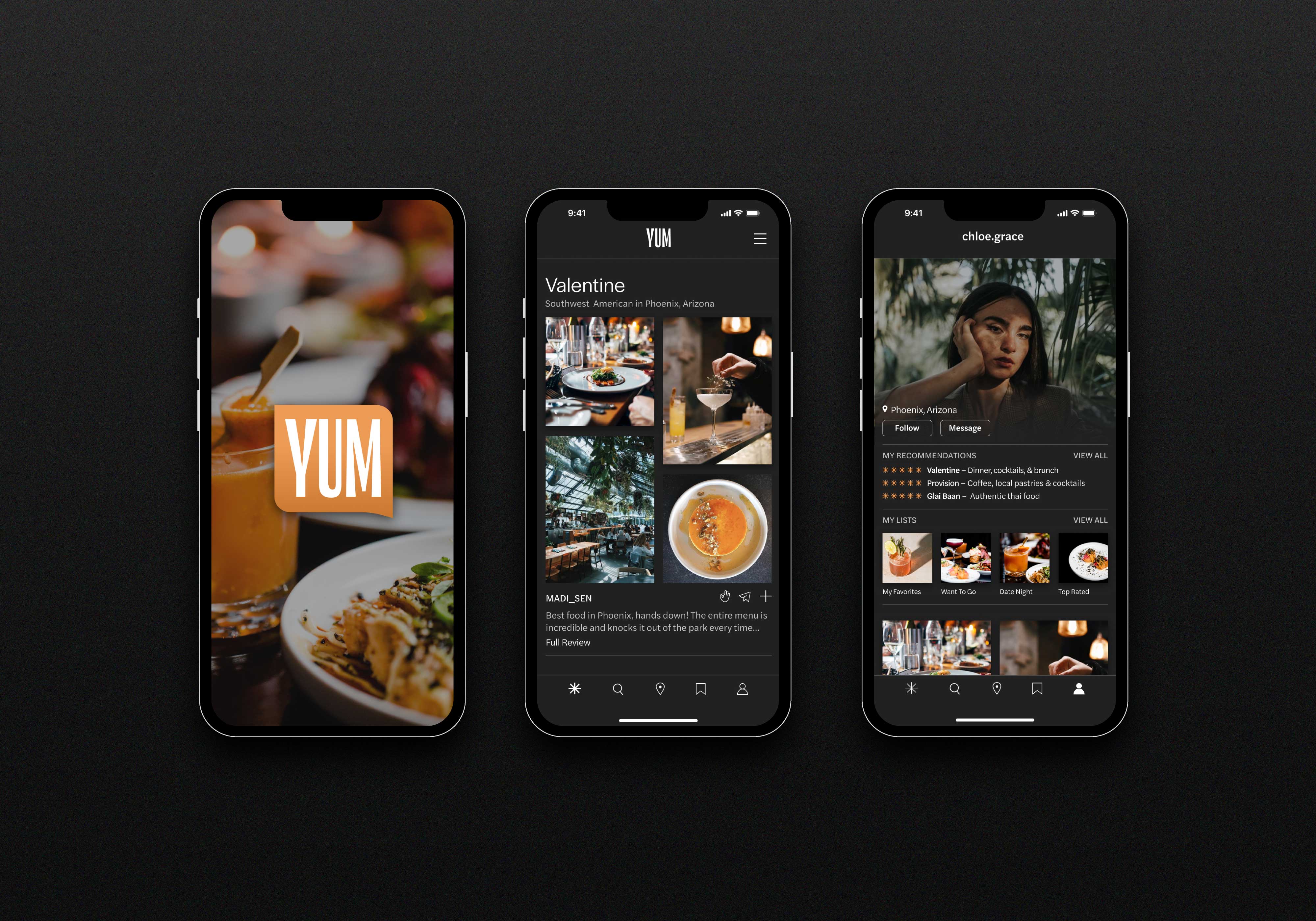 YUM was created for true foodies, those who love to try new restaurants and keep a close eye on the local food scene. The die hards who organize and categorize their favorite places and love to share recommendations and experiences with friends. YUM curates, personalizes, and streamlines the restaurant finding experience while connecting users to a network of fellow foodies.