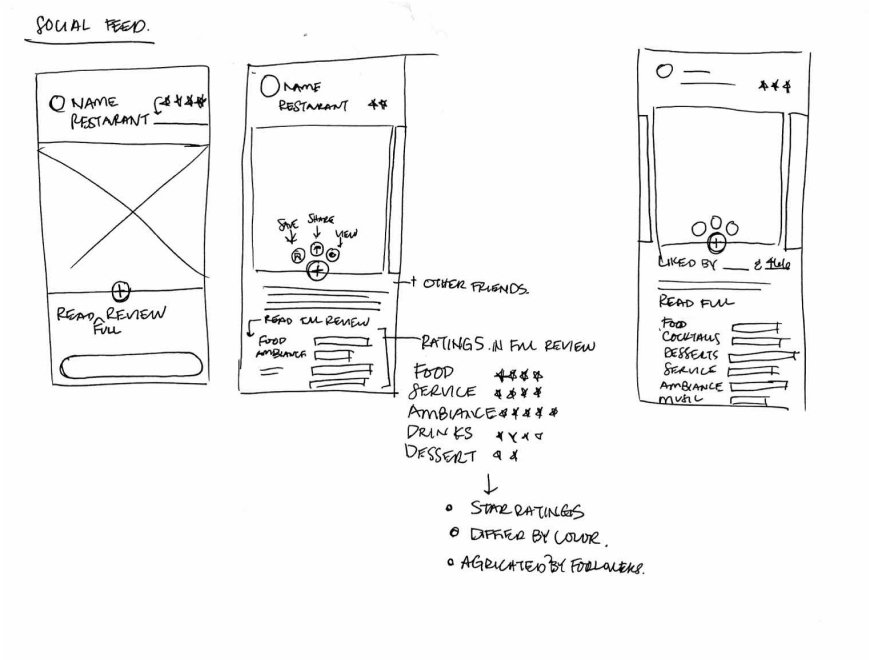 Rough sketches were done to get my initial thoughts on paper and brainstorm new ideas for specific UI elements.