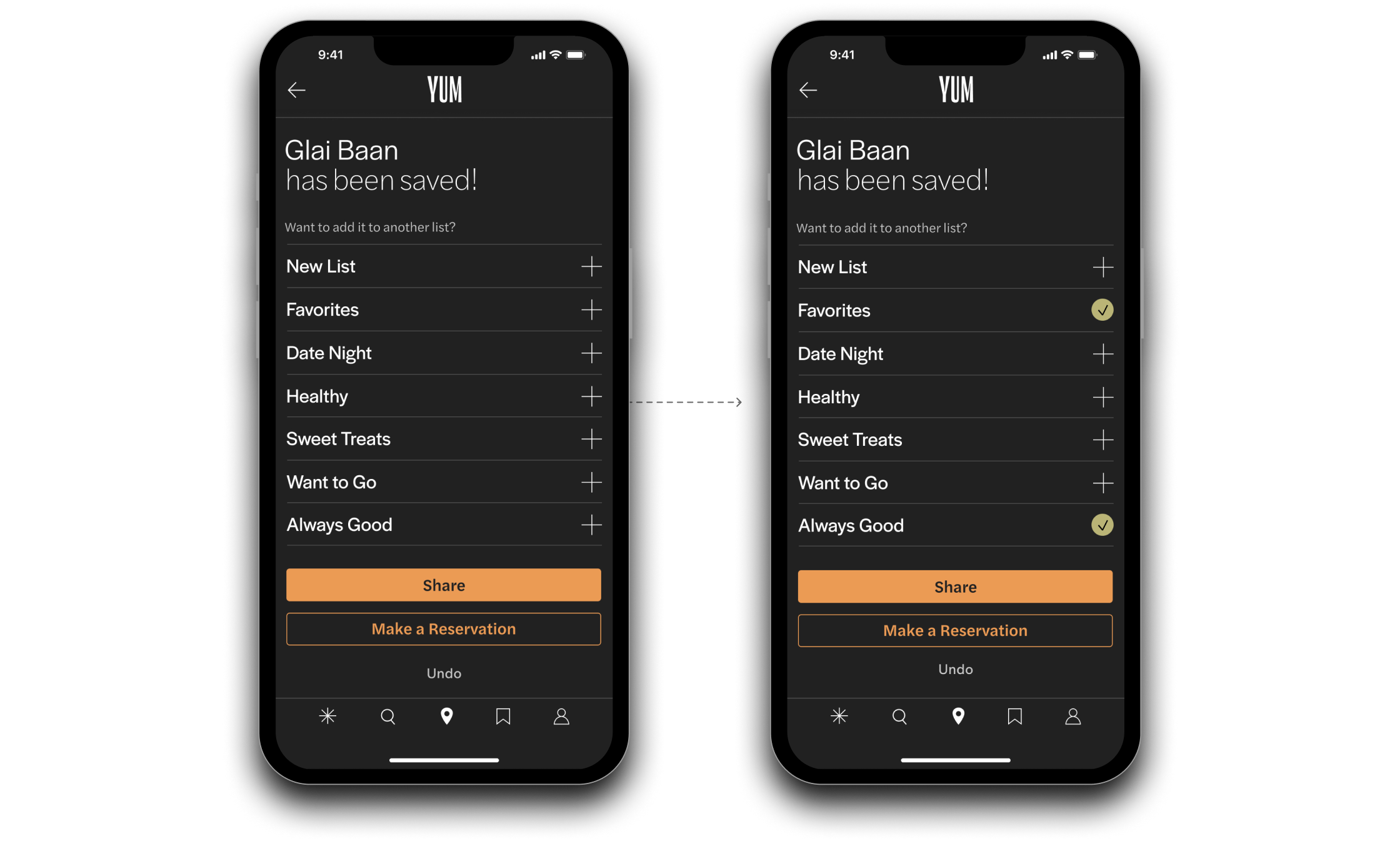 After finding a restaurant, users can then save it and add it to as many lists as they'd like